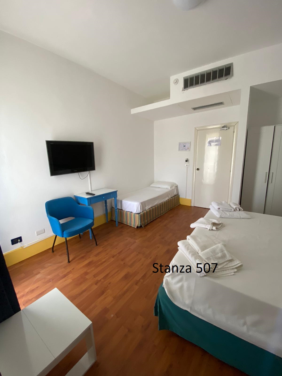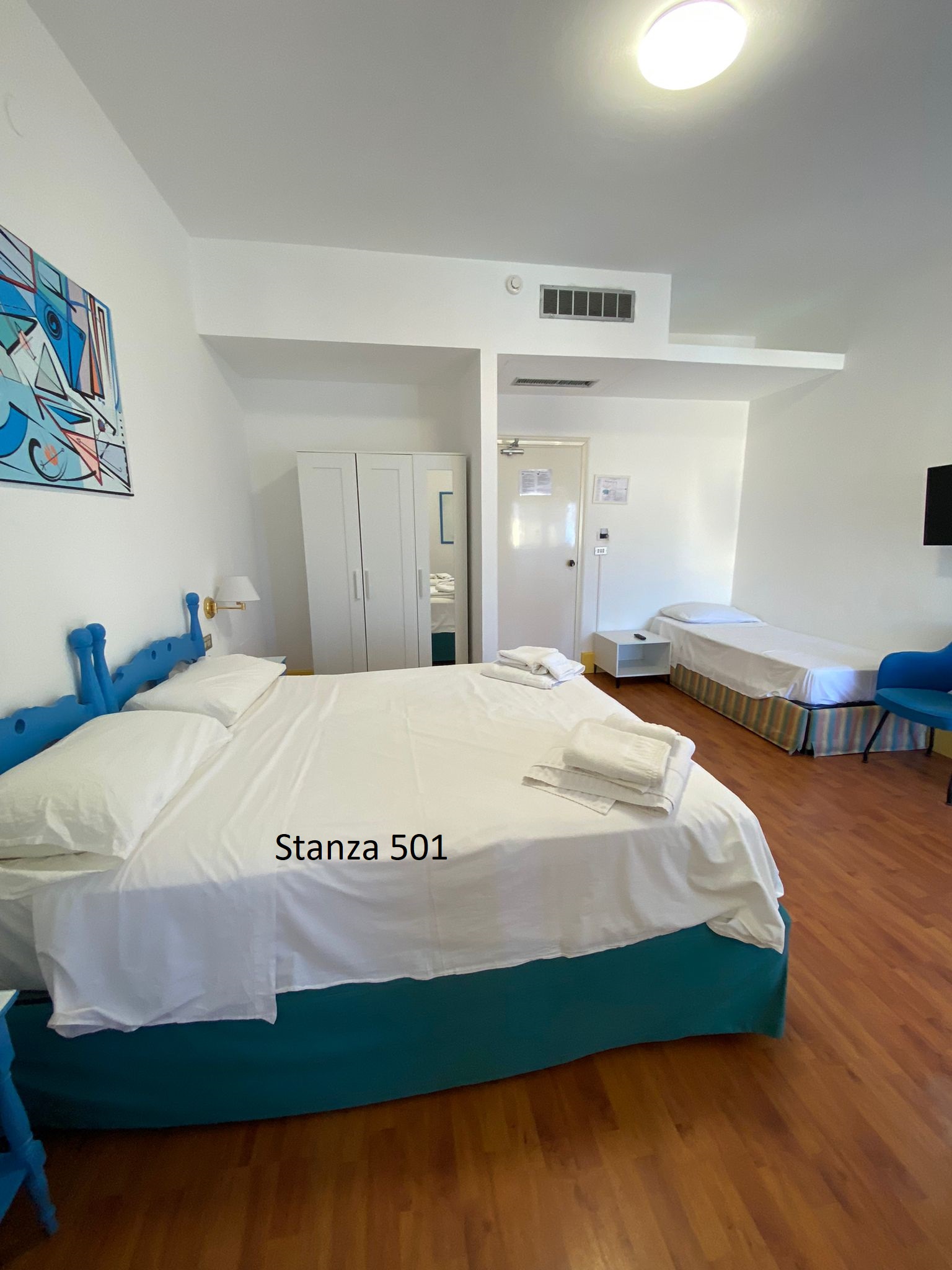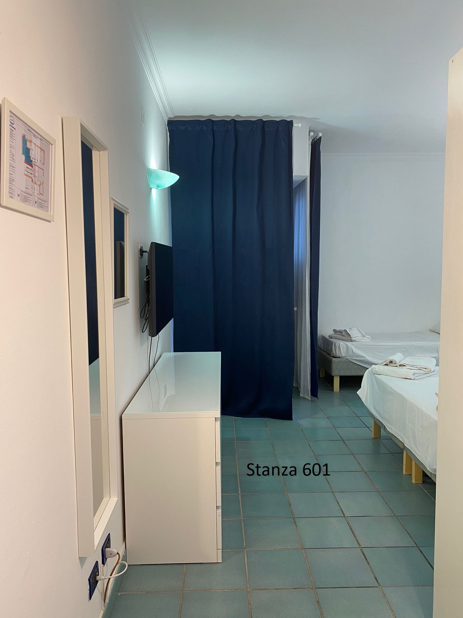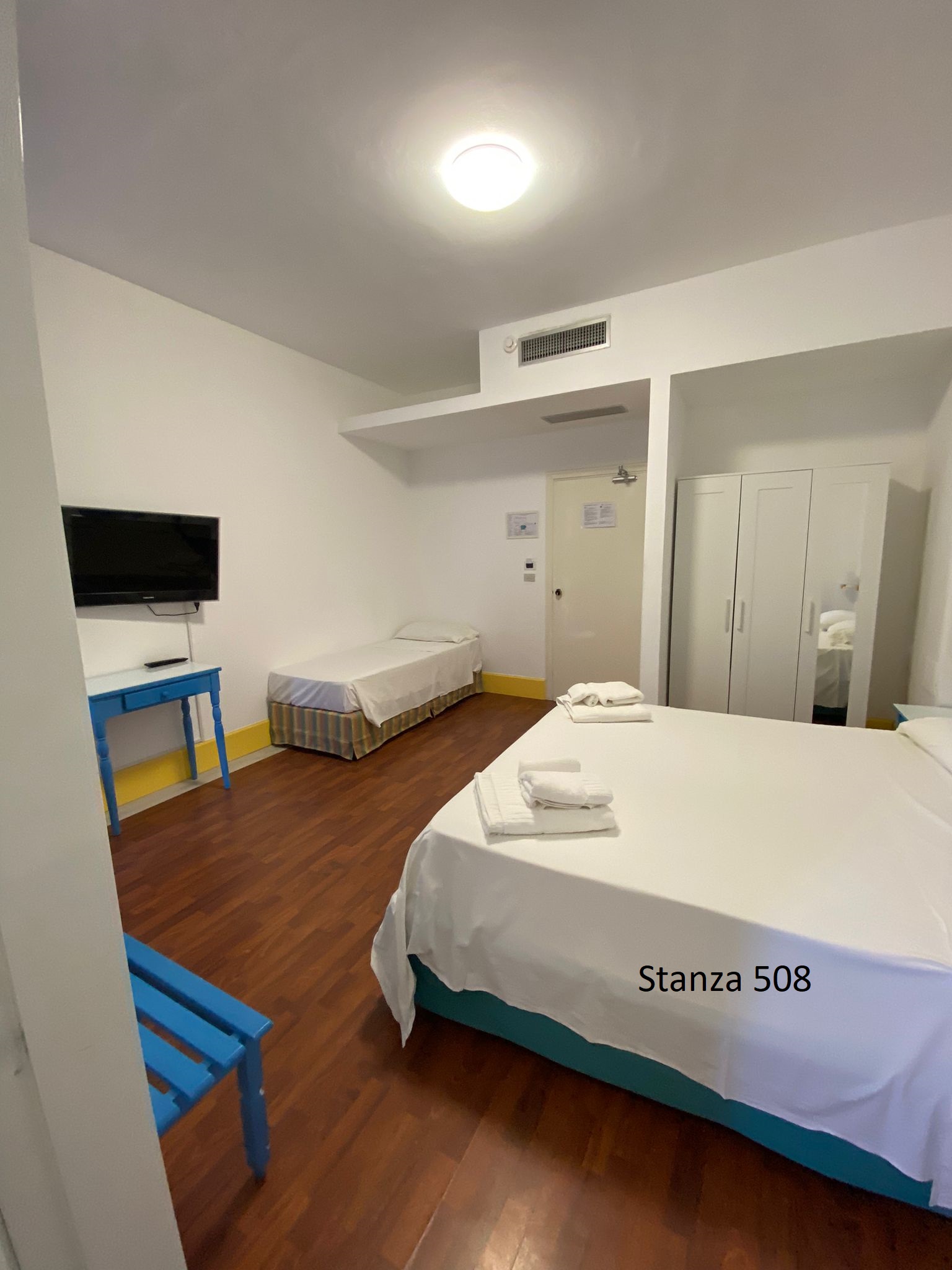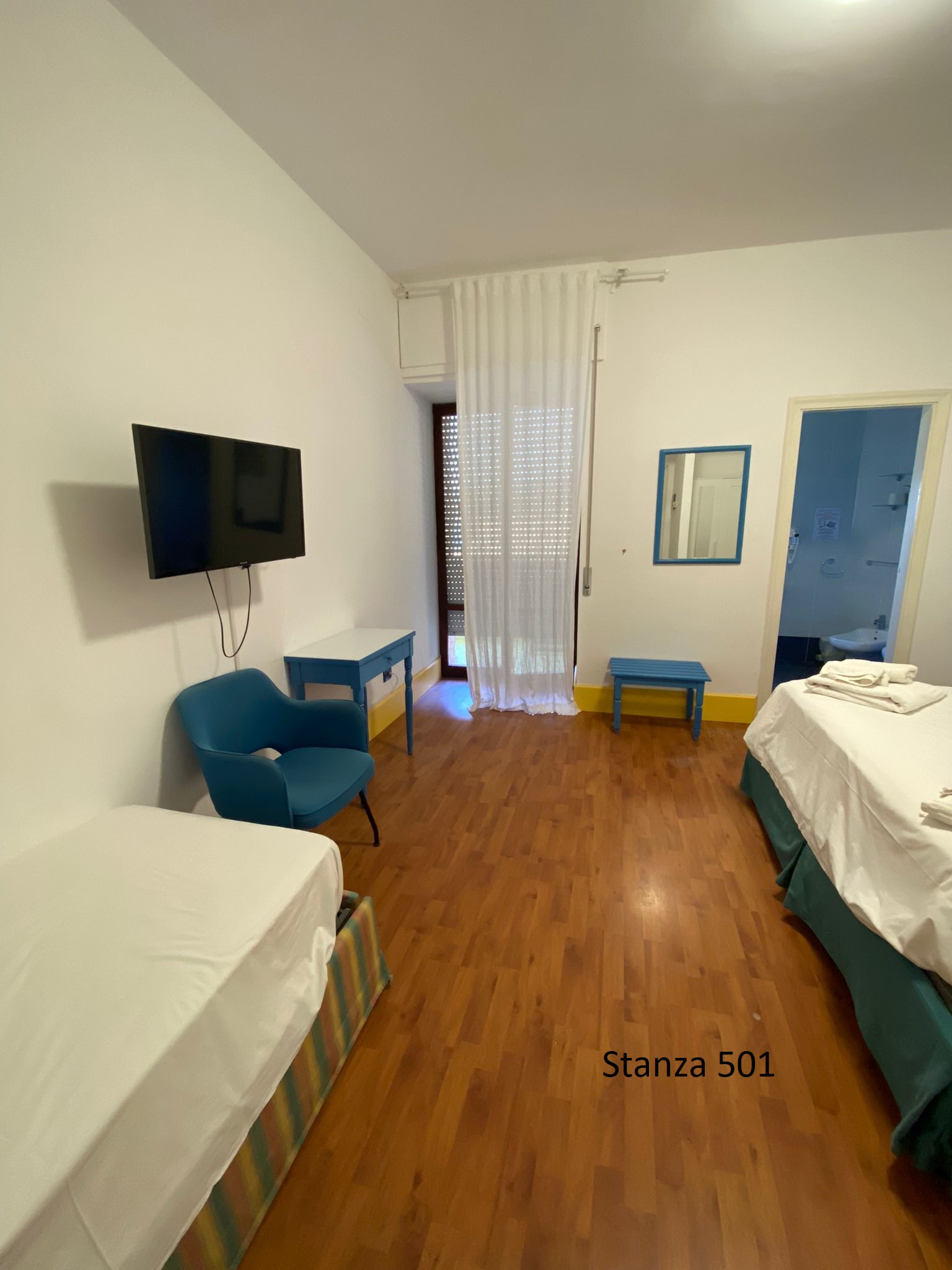 Le nostre camere triple vista mare con balcone laterale offrono una sistemazione spaziosa e confortevole, perfetta per famiglie o gruppi di amici in vacanza a Palinuro. Ogni camera è dotata di balcone laterale privato, che regala una splendida vista sul mare e permette di godere della brezza marina in totale relax. Gli interni comprendono servizi privati con doccia, TV, Wi-Fi gratuito, cassetta di sicurezza e frigo bar. Per garantire il massimo comfort, le camere sono fornite di riscaldamento e aria climatizzata. Il servizio di biancheria giornaliero assicura un ambiente sempre pulito e accogliente, permettendovi di godere al meglio della vostra vacanza nel Cilento.
